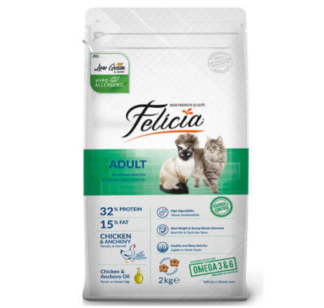 Felicia Düşük Tahıllı Yetişkin Tavuklu ve Hamsili Kedi Maması 12 Kg